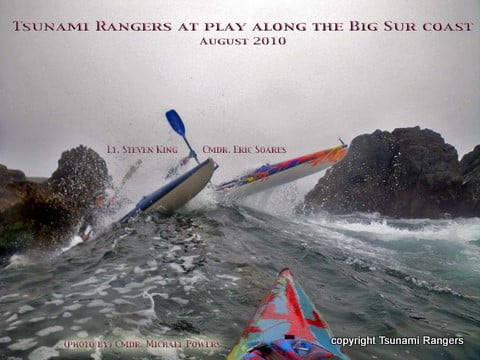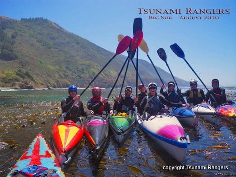 I just returned from a fantastic sea kayaking trip on the southern Big Sur coast. Nine members of our Tsunami Rangers kayaking team spent several days exploring every nook and cranny of a short stretch of beautiful Big Sur. Our team policy prohibits me from naming the exact location, so try to guess from the photos. Here are some of the highlights: