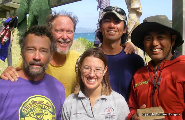 The next morning we had freshly caught clams for breakfast and set out kayaking around the island. It was a beautiful day with blue skies. Mark was taking a two-day test to become a Tsunami Ranger. He led us on a circumnavigation and showed he was a good kayaker. Satoru went skin diving out of his boat and caught fish for dinner, which he prepared, Japanese style. Even sick, I loved snorkeling without wetsuits and the wonderful feel of the air and water.