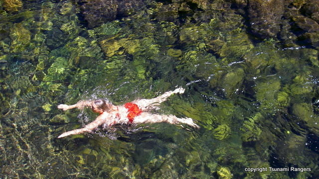 swimming in mountain lakes and streams in summer