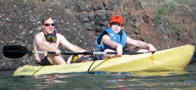 I quickly inspected the two remaining double kayaks, noting the standard Tsunami Ranger issue duct-taped hatch covers, and then handed over the cash. We got our own life vests, snorkel gear, some water and snacks and our family of 4 was ready to hit the water. As we launched, we were admonished to keep a look out for spinner dolphins leaping out of the water, about half way to the infamous Captain Cook Monument. “Yea,” I thought, “and maybe mermaids, too.”