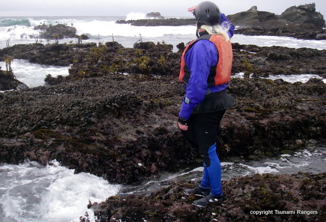 ADVANCED SCOUTING: is looking with the intent of going on a “mission”. This is checking a situation out from a distance and putting yourself in the picture, which is different than fantasizing. I remember one evening above Ross’s cove at Pillar Point. After kayaking at “Micro” we stood on the bluff watching the trains roll into Mavericks and talked about what it would be like to surf a true monster. We were juking and jiving in our minds but not really thinking of going for it. Standing just down the ridge from us I could see a young male surfer like a statue staring motionless at what could be the ride of his life. He was “psyching up”. His posture was like a jet fighter pilot looking at his craft that was about to break the sound barrier. As the sun glinted off his dark Maui Jim sunglasses, I could see him picturing himself screaming down the towering wall of moving water with the lip pitching over just above him. At that moment he was on the cover of surfer magazine and world famous, “on top of the heap”. Or, maybe he was just another pudknocker. Ego scouting does help build confidence and fantasy is a good thing, just ask any Tsunami Ranger.