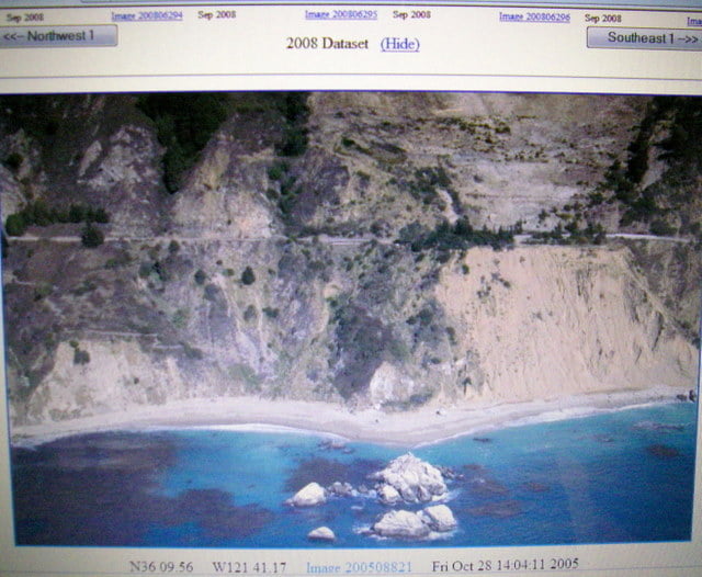 There are also websites which feature photos and information on places you might wish to paddle. In the photo below, obtained from the California Coast Records Project (go to www.californiacoastline.org to view the entire California coast from the air), we see a bird’s-eye view of Neptune’s Castle taken from an airplane. Looking at the two photos, I can guess the height of the rocks, see that the clear water contains kelp, which means there are probably fish and other wildlife in the area, and note that there is a sandy beach I can land on and a trail to the highway above, which provides an escape route. Without getting up from my easy chair, I now know a lot about Neptune’s Castle. I can make a plan based upon Phase 1 information. So far, so good.