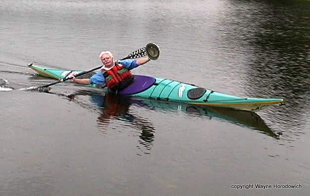 Though Mr. Hutchinson is getting up there in age, he still goes out and paddles, still designs and produces. And he is still teaching people how to go “beyond the cockpit” in style. For those lucky enough to be in the San Francisco area next month, Derek and Wayne Horodowich will be teaching a master on-water class on bracing and edging a kayak on October 8th and again on the 9th in Emeryville. Sponsored by Bay Area Sea Kayakers (BASK), it will be a memorable seminar. Contact Mark Silowitz at marksilOO@msn.com for more information.