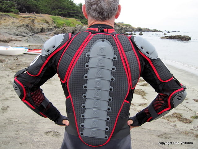 What should a wave warrior wear when in wind and waves—and rocks? Armor, of course. But if you look through the websites of kayaking gear manufacturers such as Kokatat, NRS, Astral, Stohlquist, and the like, you won’t find any. That’s because the kayaking industry is way behind the folks who make motocross gear.