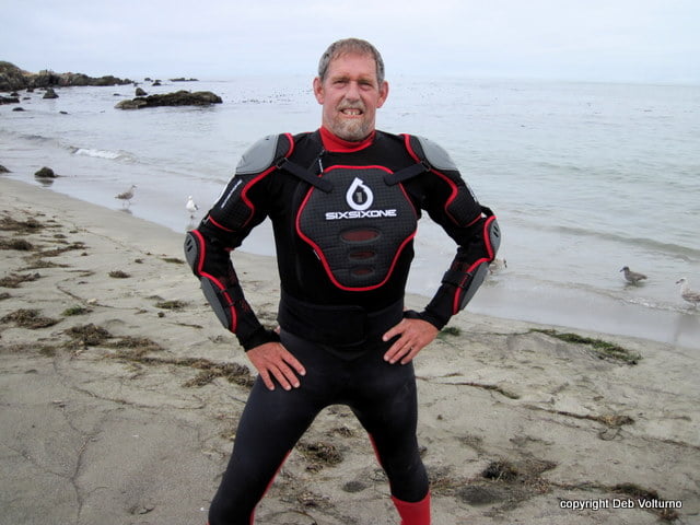 I think this is a great topic to discuss. But for those who don’t know the Tsunami Rangers well, let me say in the numerous times I’ve been paddling with Eric and the other TR, over many many years I’ve not once seen any of us wearing motocross armor or any other type of armor, aside from the pfd Eric mentioned. It’s true that Jim and Eric tested something out, but they never actually commited to using it. Who wants to paddle or swim with all that extra stuff on you? It’s bad enough we have to wear cold-water protection, pfds, helmets, etc.