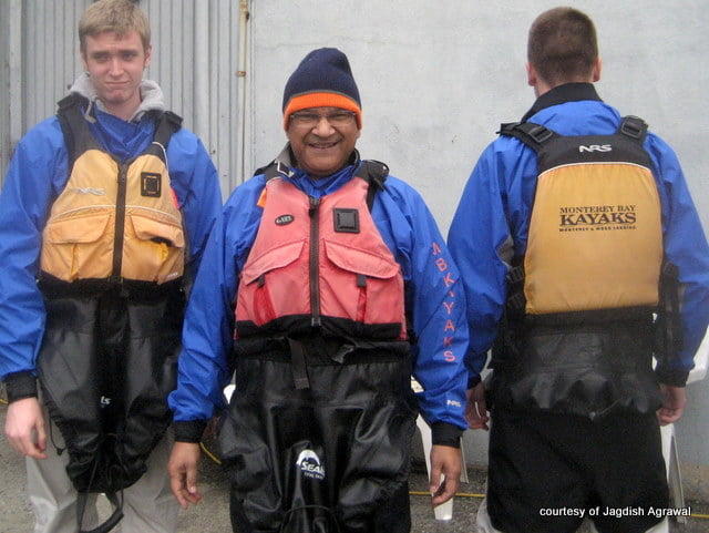Jagdish, I would love to take you out kayaking with me, because you have such enthusiasm. If it were in a very protected environment such as a pond or Elkhorn Slough on a calm day, I would have no problems with the fact that you cannot swim. However, if you wanted to do more adventurous kayaking, say on the exposed California coast, it would be necessary for you to learn how to swim competently.