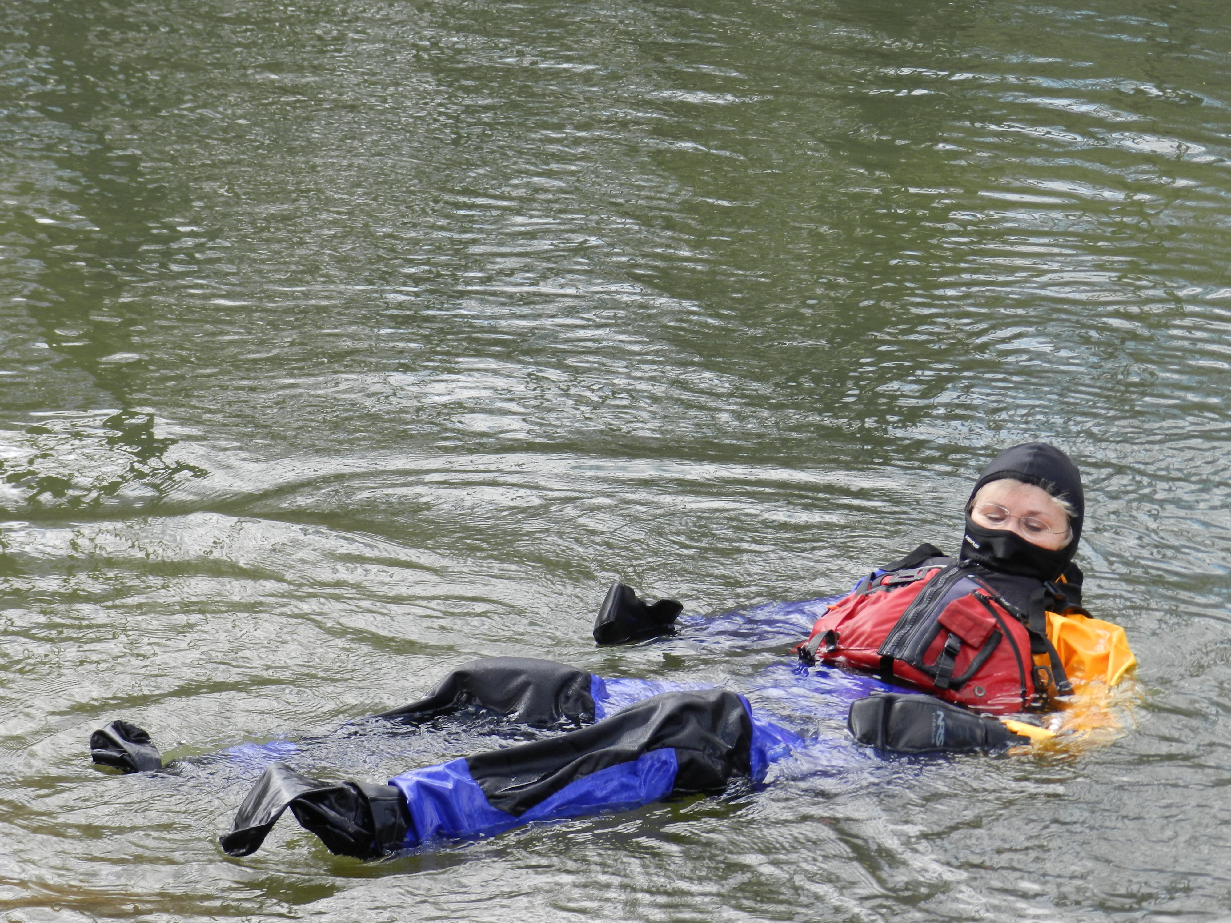 Swim-testing is fast and easy, and it’s no big deal when you’re dressed for the water temperature. If you’re unwilling to swim-test, it’s usually because you’re worried that your gear won’t keep you warm and/or dry when you’re in the water.